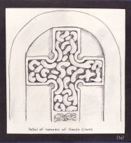 SAXON CROSSES The sketch 1b is detail of the top of the stone cross shown in sketch (1a). Again the design is of the knotwork style to correspond with the design on the interior of the cross shape depicted on the main face of the cross. The irregularity of the design is again apparent in the sketch due to erosion. |